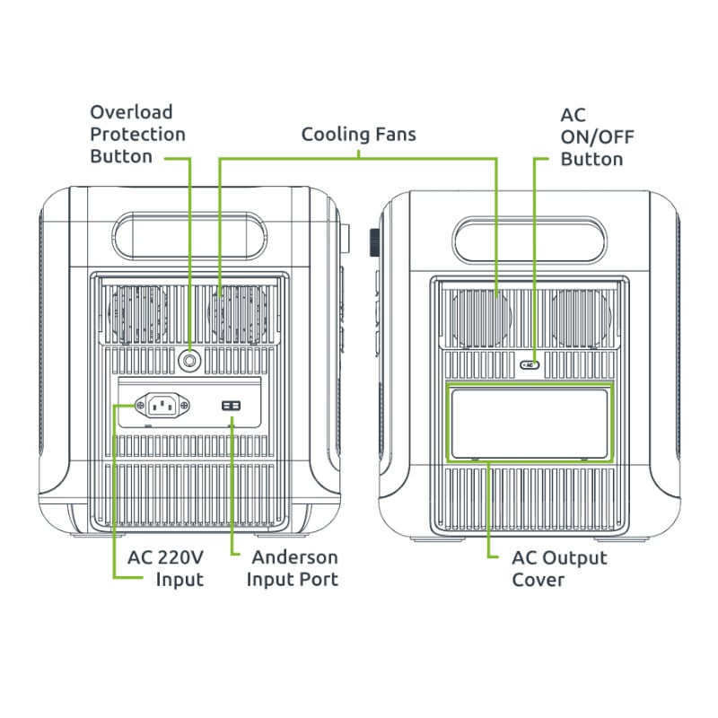 - AC Output: 2x 220-240V/50Hz 2400W Rated