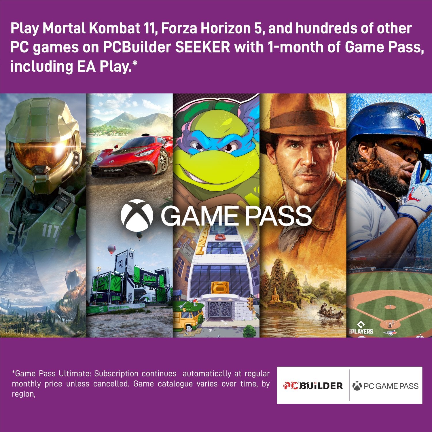 The PCBuilder SEEKER Windows 11 Gaming PC also includes one month of PC Game Pass including EA Play. Play over 100 high-quality PC games, in various genres such as Halo Infinite, Forza Horizon 5, and Minecraft on your new gaming rig. With new games added all the time, there’s always something new to play from day one.