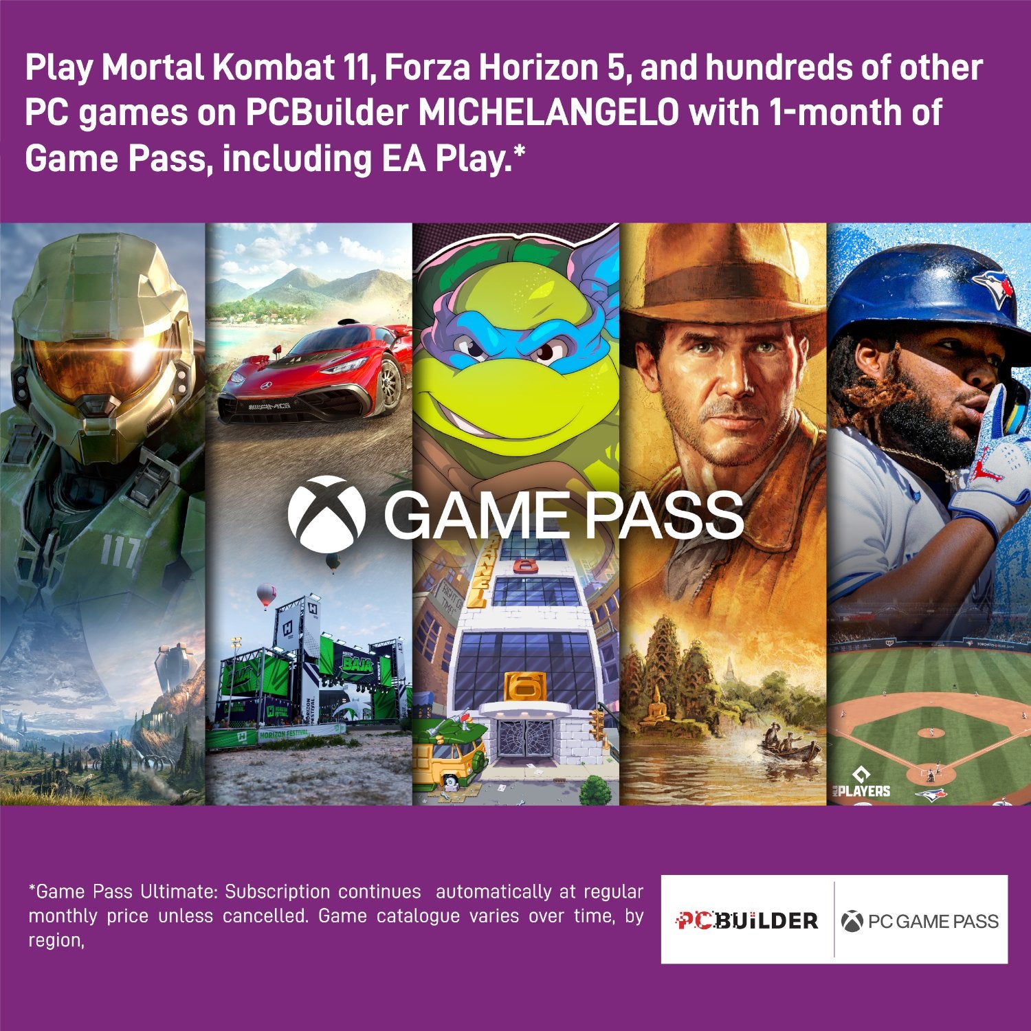 - Play over 100 high-quality PC games like Halo Infinite, Forza Horizon 5 and Teenage Mutant Ninja Turtles: Shredder’s Revenge with your new build and one month of PC Game Pass including EA Play. With new games being added all the time, there’s always something new to play from day one.