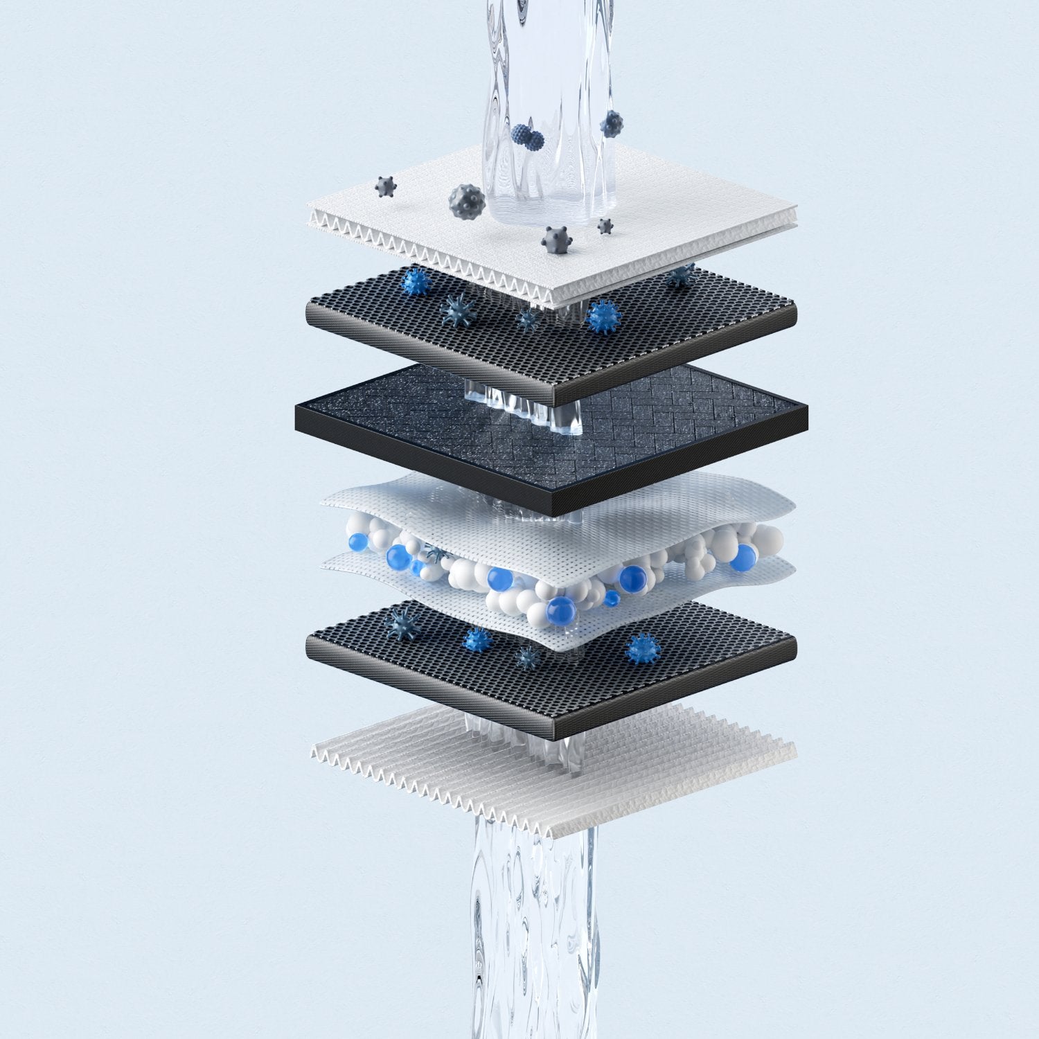 - PPC composite filter with PP Foam, Carbon rod filter, and antiscalant